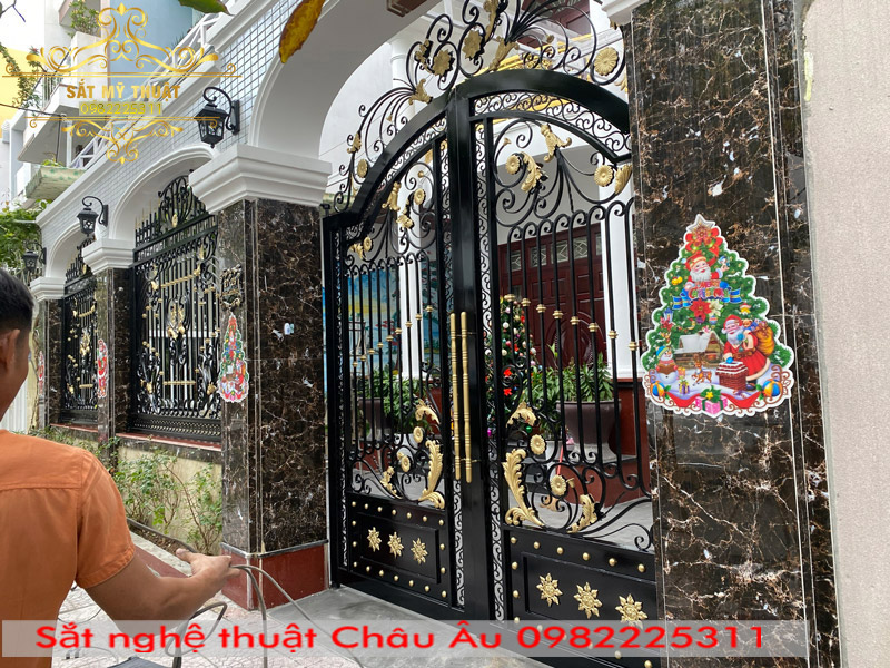 Mẫu cổng sắt mạ màu nghệ thuật đẹp, sang trọng, đẳng cấp